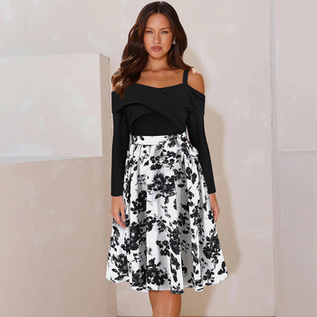 Novedades Vestidos MIDI con estampado floral de manga larga y hombros descubiertos para mujer